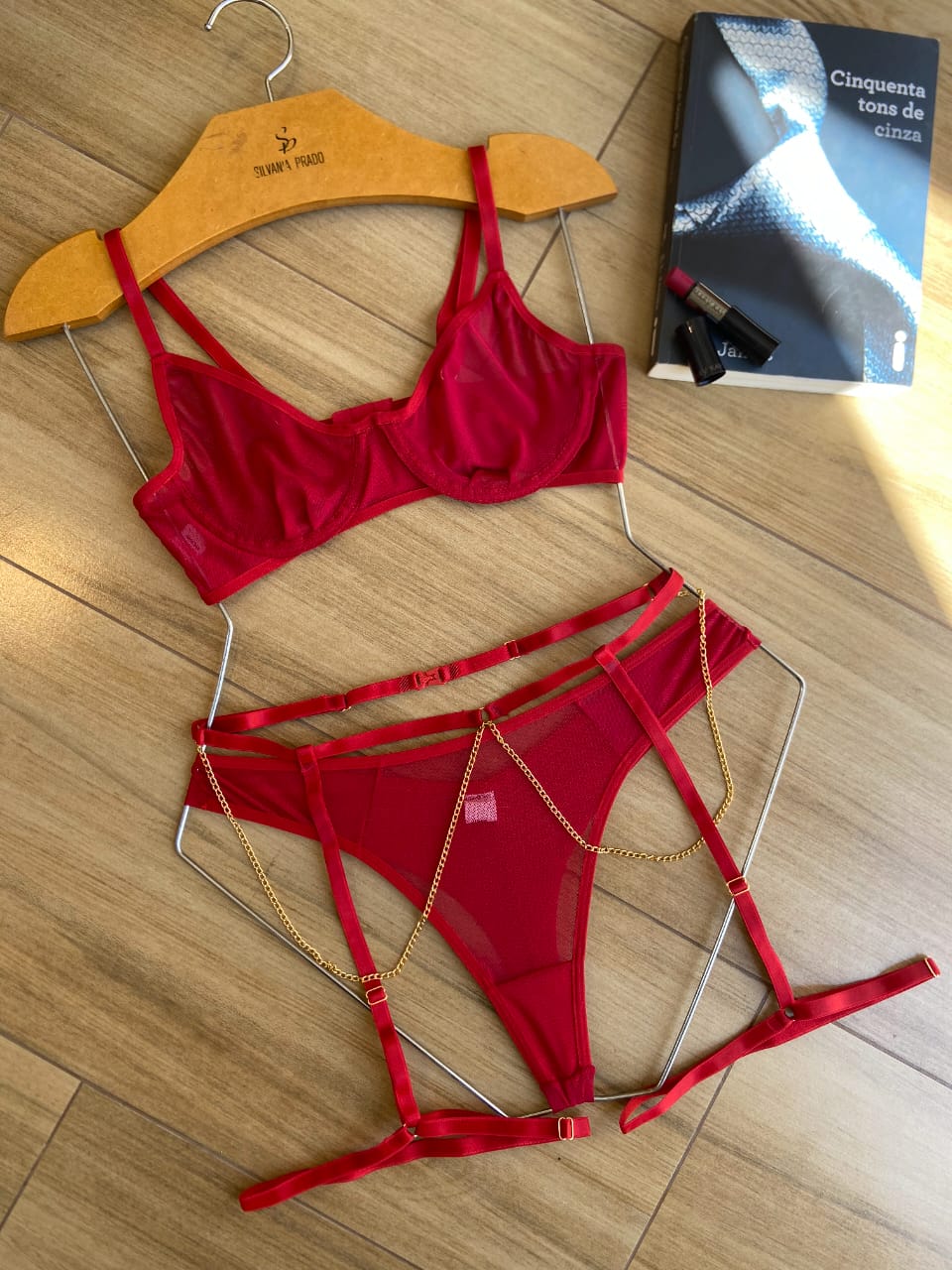 Disponível nas cores rubi e preto, o conjunto atende diferentes estilos. A cor rubi transmite intensidade e sofisticação, ideal para quem gosta de peças marcantes. Já o preto é clássico e atemporal, perfeito para quem busca elegância e versatilidade.